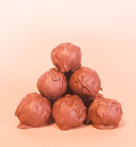 Elke verpakking bevat ongeveer 250 gram van onze handgemaakte chocoladetruffels.